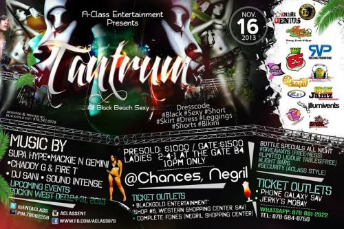 A-Class Ent. Presents TANTRUM "ALL BLACK BEACH SEXY" @Chances Negril November 16, 2013