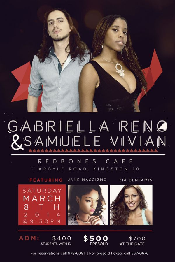 Gabriella Reno is a singer, songwriter and rebelliously opinionated individual. Her acoustic sound defies genre as elements of soul, folk, indie and reggae can be found in her sweet smoky songs. In the summer of 2013 she toured Europe playing in clubs and jazz bars. She recently opened for Toni Braxton and Chrisette Michele at the Jamaica Jazz and Blues festival. She is Tallawah Magazine’s girl of the moment and described by the Gleaner Jamaica as “Jamaica’s indie Princess”.