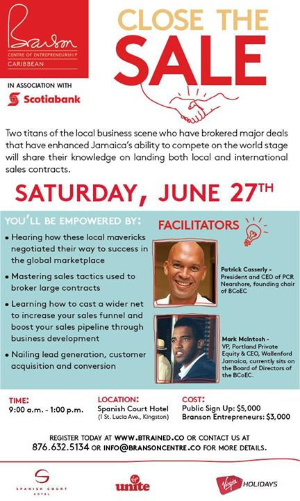 Two titans of the local business scene who have brokered major business deals that have enhanced Jamaica's ability to compete on the world stage will share their knowledge on landing both local and international sales contract