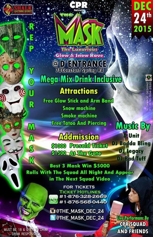 Music By: D Unit, DJ Badder Bling, DJ Legacy, DJ Bad Tuff Live Performances by: CPR Squad and Friends. Best 3 Masks win $5,000 Rools with the Squad All Night and apper in the Next Squad Video. Mixed Drinks Inclusive! Drink Responsibly!