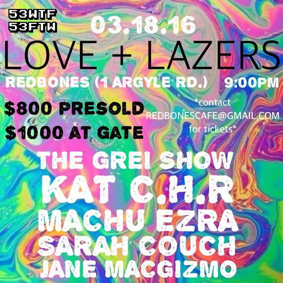 Live performance by KAT C.H.R, SARAH COUCH, JANE MACGIZMO, THE GREI SHOW, and MACHU EZRA!!