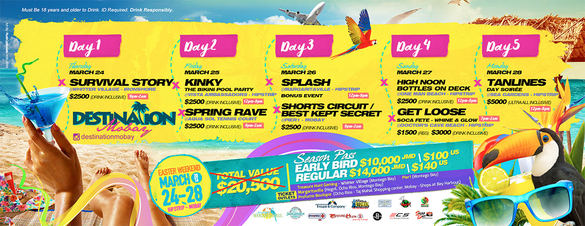 Destination Mobay is the ultimate event this Easter weekend 2016! Come and experience 8 parties in 5 nights and have 1 unforgettable experience!