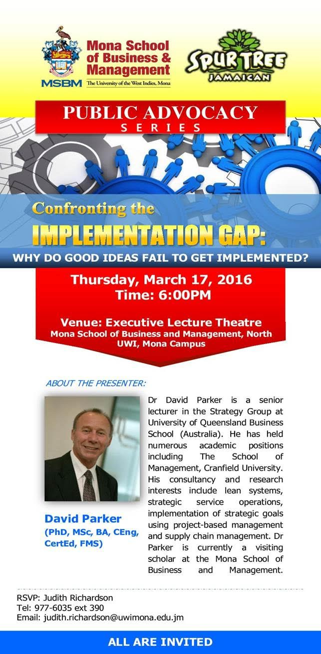 The Mona School Of Business and Management Presents its Public Advisory Series "Confronting the Implementation Gap: Why Good Ideas Fail to Get Implemented"