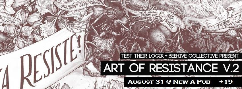 ART-SPOKEN WORD-HIP HOP- This will be a multi-disciplanery showcase of breathtaking visual art, engaged storytelling, participatory discussion and live hiphop and spoken word performances! This is a hybrid Beehive presentation and Test Their Logik hip-hop showcase. This event will lead you - the audience through a MesoAmérica Resiste story while breaking to hear spoken word verses covering similar political themes.