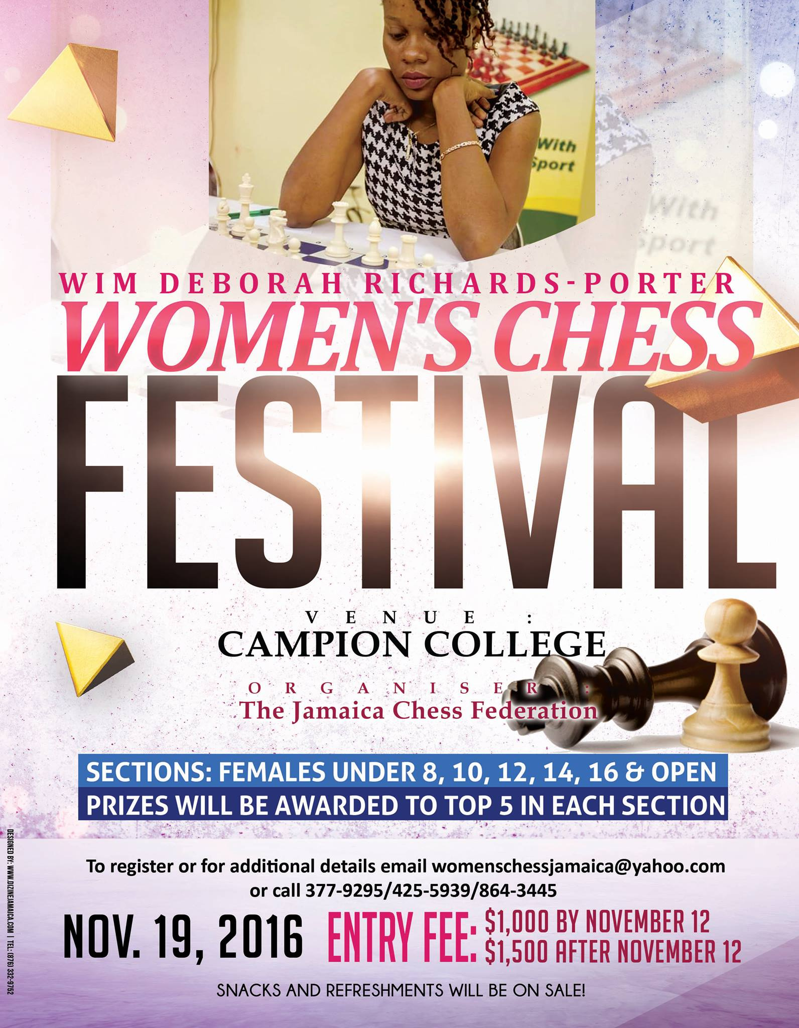 On November 19, The Jamaica Chess Federation (the governing body for chess in Jamaica) will be staging its annual "Woman International Master Deborah Richards-Porter Women's Chess Festival", a tournament named in honour of the country's most decorated female chess player.
