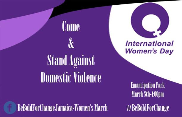Women's March for Violence Against Women. #BeBoldForChange Our aim is to raise awareness about domestic violence, cyber abuse, rape and incest and the effects that this has on Jamaican society. Our goal is to be able to educate the wider public to recognize abuse with the aim of steering persons to better situations. With one strong voice we can fight for justice!