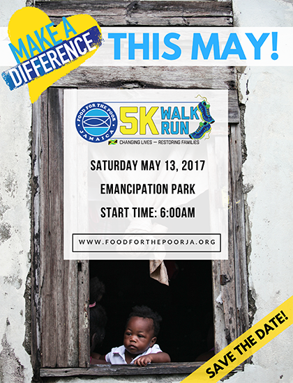 Make a Difference this May! Food for the Poor is organising a 5K Run/Walk, with proceeds going to providing food, shelter, and support for Jamaicans in need.