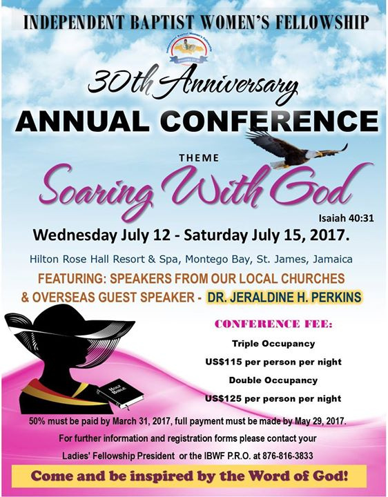 IBWF Ladies Conference celebrates 30 years at its' annual conference this July. Reminder: - final payment is due 29th May, 2017.