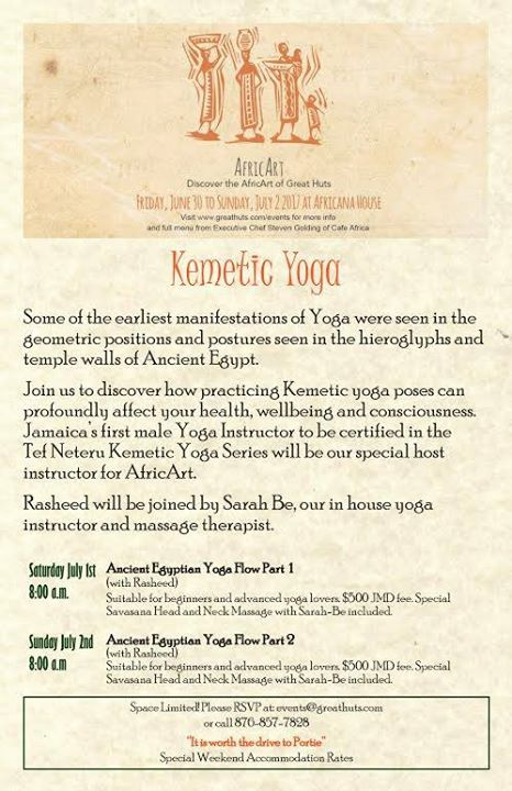 Overlook the carribean ocean on our yoga deck and join our very own Yoga instrcutor, Sarah Be, for a weekend of authentic Kemetic Yoga at Great Huts. Our breakfast menu is available if you wish to stay to dine after, and our pool/beach will be available for guests.