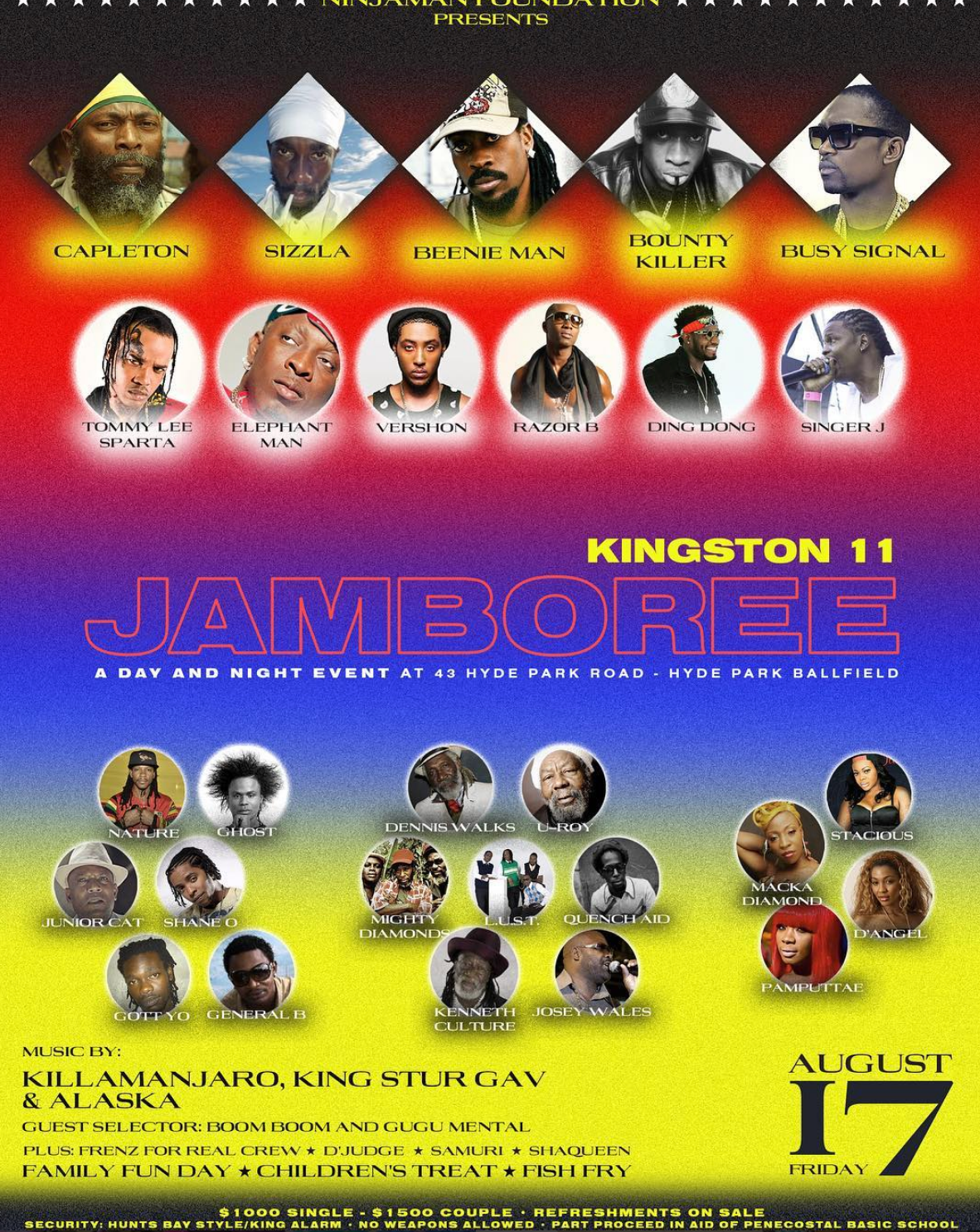 Music by Music by Killamanjaro, King Stur Gav, and Alaska with live performances by some of Jamaica's top artists.
