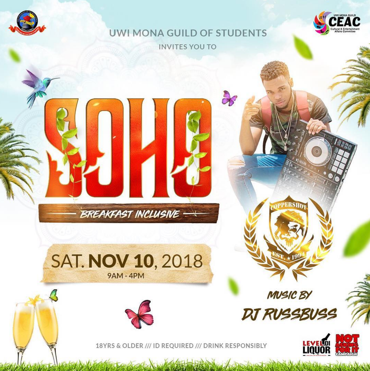 The UWI Mona Guild of Students invites you to SOHO: Breakfast Inclusive Party.