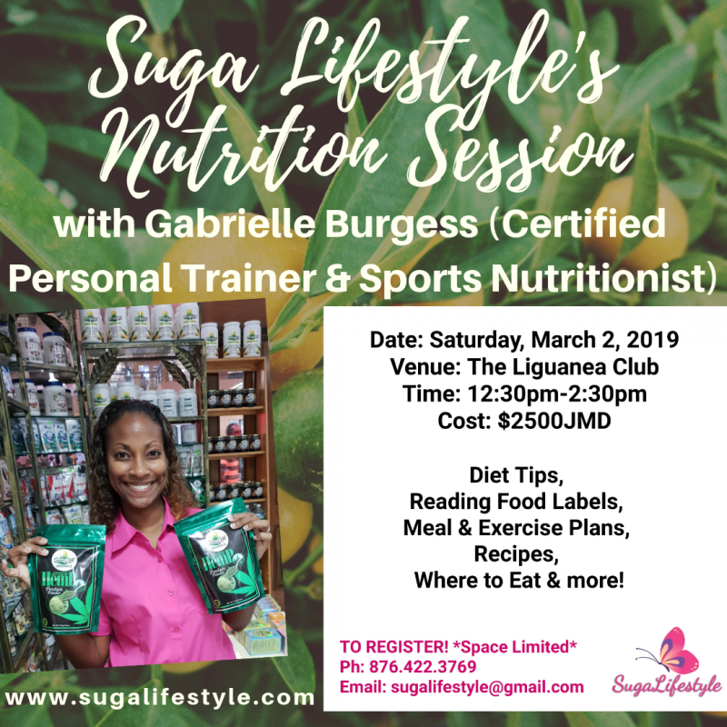 About this eventSuga Lifestyle's Nutrition Session with Gabrielle Burgess, certified trainer and sports nutritionist.