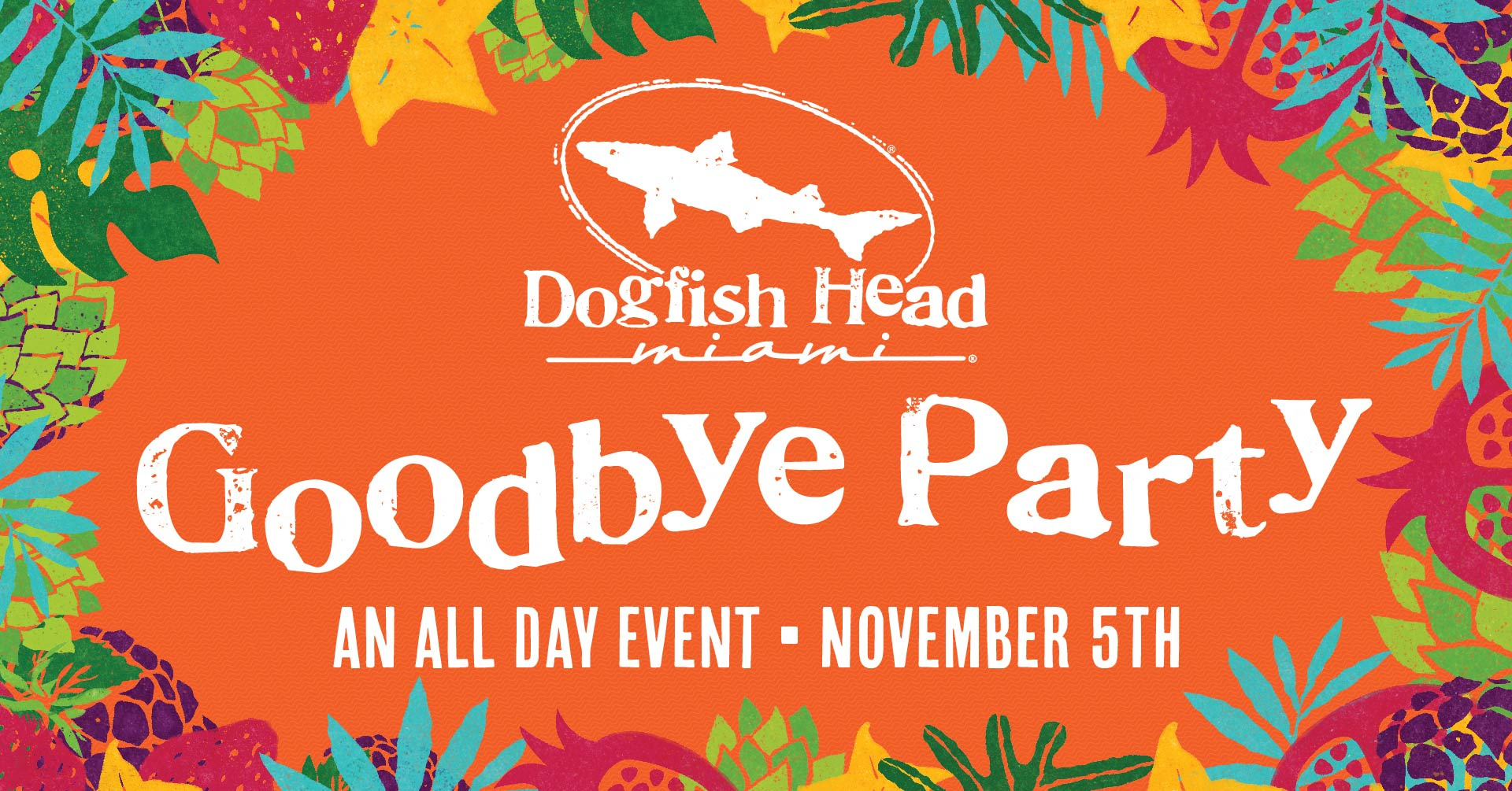 With Dogfish Head Miami’s journey coming to an end, we invite you to this all-day event. Mark your calendars for Saturday, November 5 as Dogfish Head Miami goes out in style with this Goodbye Party!!! This will be an all-day celebration from noon to midnight. Event highlights include a history mystery every hour, where we will be sampling out Dogfish Head brews not sold on draft and a wonderful DJ line-up throughout the night.