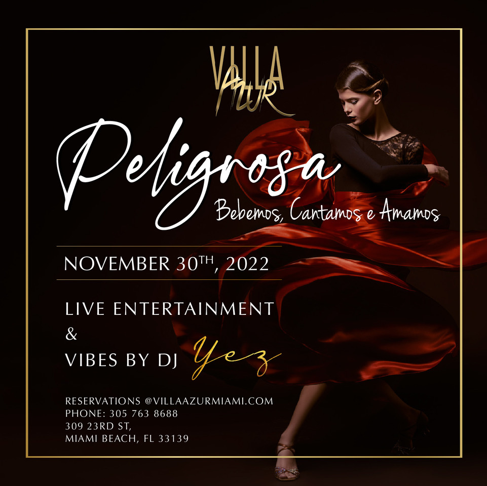 Peligrosa is back! Every Wednesday starting November 30, visit Miami Beach’s favorite French-Mediterranean supper club for friendly and sunny cuisine among a magical musical atmosphere with DJ Yez, Fire Girl and Live Sax. The lively nighttime performances invite you to sing and dance under the stars until late. Dine in the enchanted outdoor courtyard hidden away within Villa Azur’s walls, or recline in the romantic dining rooms flush in colors of champagne and blue velvet. The French Riviera awaits. Book your reservation today!
