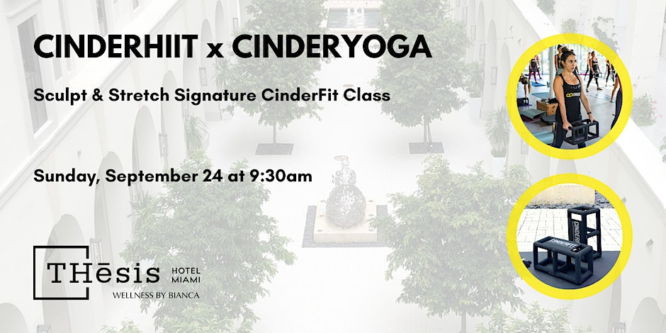 Join us for a CinderHIIT workout targeting the full body with a combination of timed resistance training and cardio intervals for a fast and efficient workout that will leave you feeling strong and powerful. After your CinderHIIT class, THesis Wellness Ambassador, Bianca Natali (200RYT), guides you through a CinderYOGA stretch & cool down.