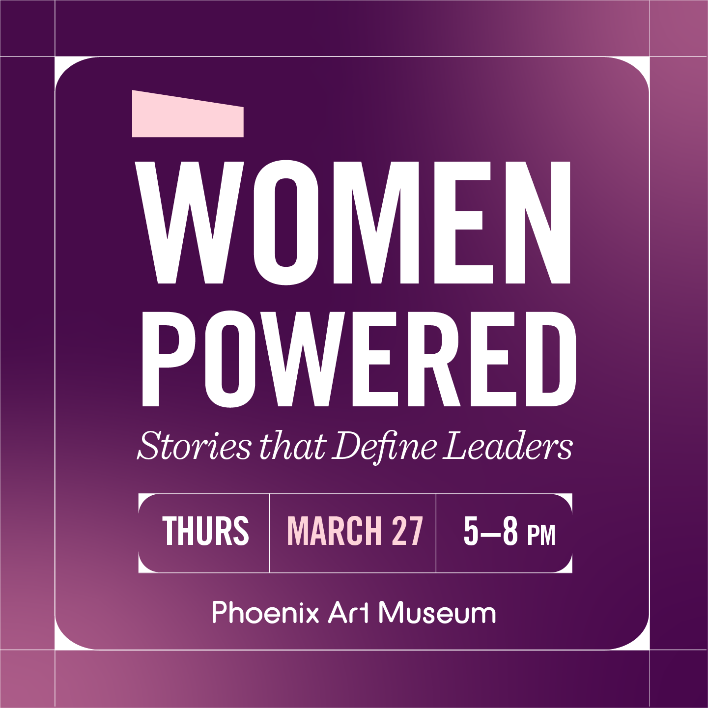 A panel discussion of incredible women serving in leadership roles from a wide variety of industries will share their personal insights and aggregated wisdom. Prior to the panel, there is a Sip+Share networking hour for dedicated time intended to connect the community with local entrepreneurs and executives. These women will host Q&A time for those seeking more individual guidance, all offered in a museum setting that encourages creativity, connection, and community.