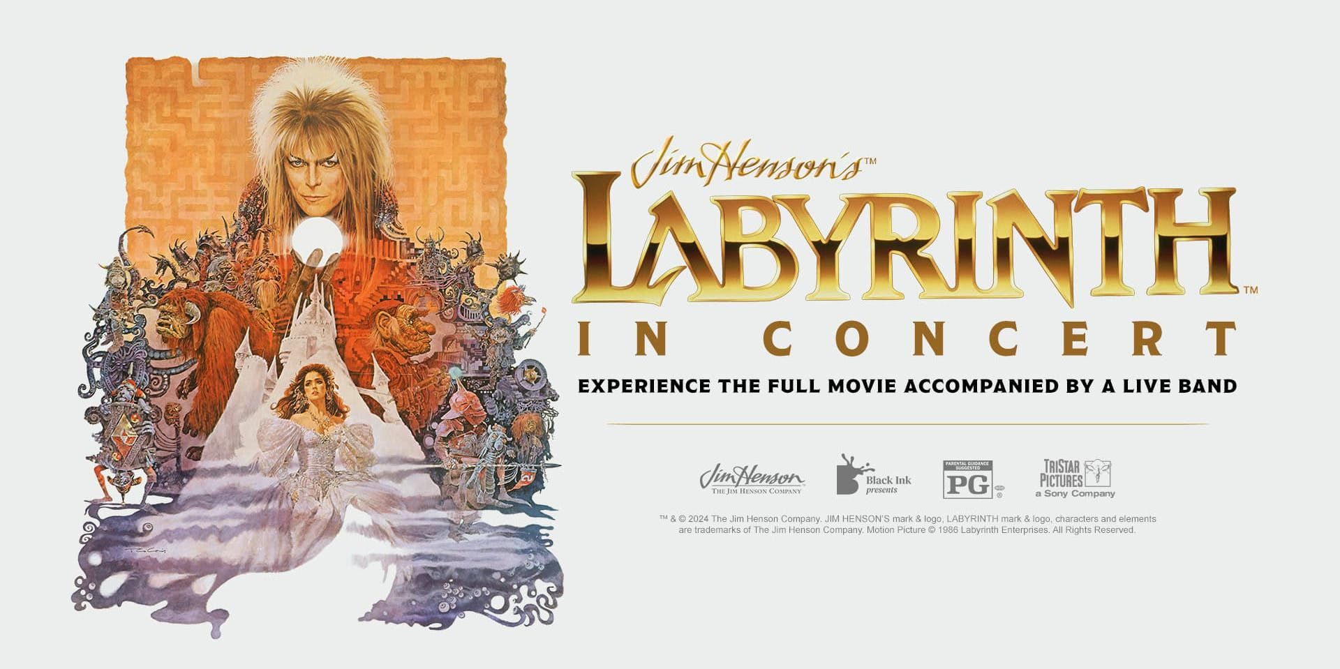 Experience Jim Henson’s original masterpiece Labyrinth like never before with “Jim Henson’s Labyrinth: In Concert!” Watch the full movie, as a live band performs in sync with David Bowie’s original vocals, playing the songs and score composed by Bowie and Trevor Jones. Feel the power of the music from the cult classic live!