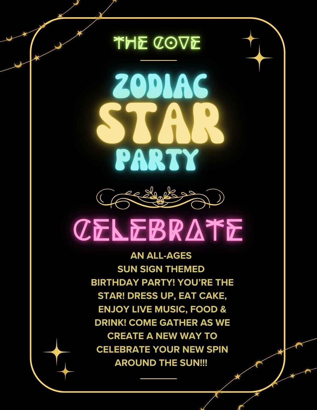 The Zodiac Star Party is an all-ages-themed Birthday Party concept celebrating the Sun Sign of the Month. Guests are invited to dress up, invite friends, enjoy cake, live music, raffle, and custom-themed drinks. The color for Aries is RED!