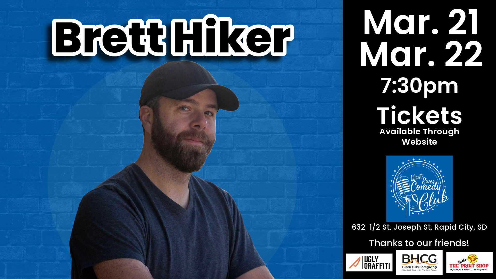 Brett Hiker was a regular guy until fifteen years ago when he was bitten by a stray comedian. Since, Hiker has spent his career telling jokes in theaters, clubs, and music venues across North America and Europe. His comedy has found its way to television on Fox, Peacock, and Comcast as well as the Aspen, Limestone, and High Plains Comedy Fests. He is an avid fan of dive bars, legos, large dogs, soft drugs, snowstorms, carharts, Wiffle Ball, Toaster Strudels, silly hats, open containers, vintage hockey teams, pillow forts, day drinking, breakfast food, and nothing else. Although Brett was raised by a pack of mountain folk in Colorado, he now resides and tells jokes in NYC where, against his will, he gets meaner and funnier by the day.
