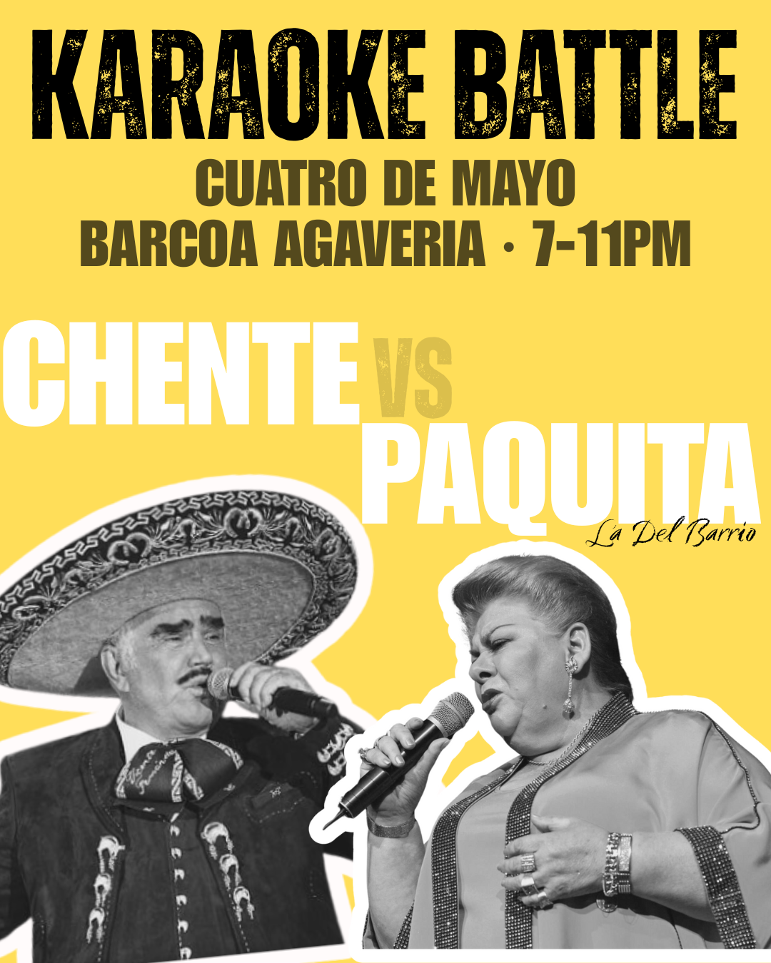 From 7pm-11pm our weekly karaoke turns into a battle between the songs of Vicente Fernandez and Paquita la del Barrio. C'mon, you know you wanna…