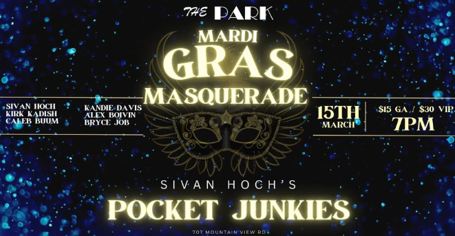 Get ready for an unforgettable night! Sivan Hoch's Pocket Junkies are bringing their funky beats to a Mardi Gras Masquerade Party, taking you on a trip to the French Quarter with a night of New Orleans funk and soul! 🎷 [https://static.xx.fbcdn.net/images/emoji.php/v9/ta0/1/16/1f3b7.png]🎶 [https://static.xx.fbcdn.net/images/emoji.php/v9/t1f/1/16/1f3b6.png]