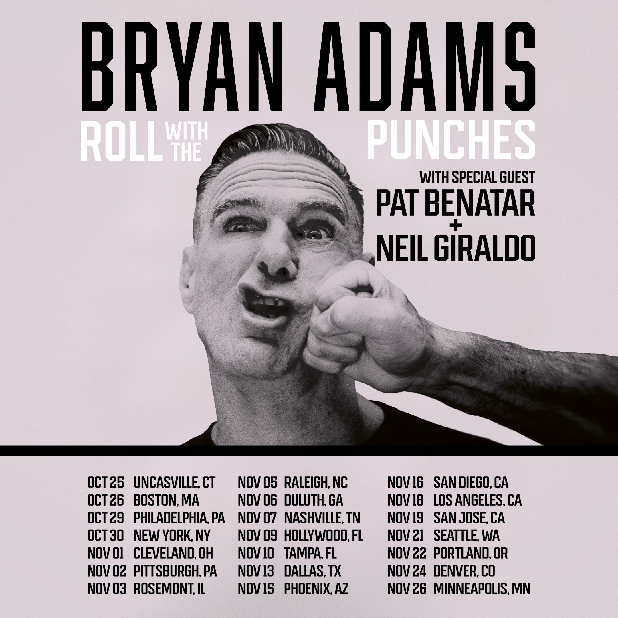 Special guests Pat Benatar and Neil Giraldo will open for Adams on all U.S. dates.