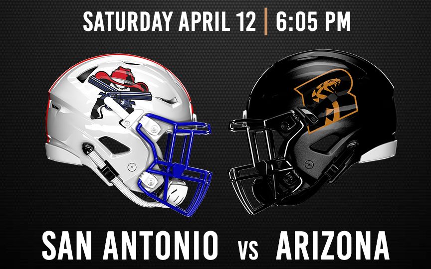 About this eventThe Arizona Rattlers take on the San Antonio Gunslingers at Desert Diamond Arena on Saturday, April 12.