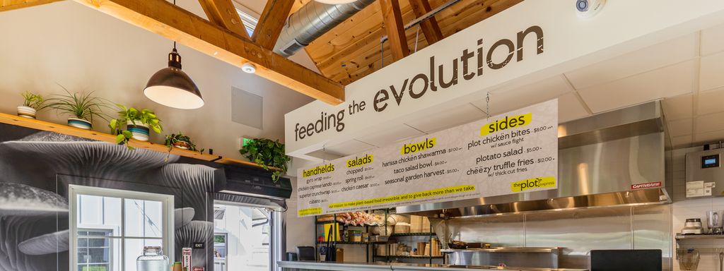 The Plot Express's mission is to make plant based food irresistible. The Plot Express is quick, casual and convenient food, with a menu that is playful and delicious. The Plot highlights fresh, locally sourced ingredients. Menu items range from a hearty cubano sandwich to a light and refreshing spring roll salad. Diners can take-away or enjoy their meal in a hip communal outdoor space.