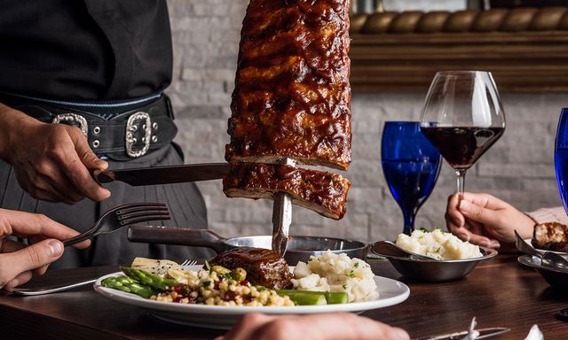 Texas de Brazil is no ordinary steakhouse. It's a dining experience like no other. Here, traditions of Brazilian cuisine blend with generous Texas hospitality to create a lively atmosphere in an upscale setting. Your meal begins with a visit to an extravagant salad area - a feast for your eyes as well as your palate. Indulge in a wide array of seasonal roasted vegetables, fresh artisan breads, charcuterie, imported cheeses and other specialties. Then enjoy the rodizio-style dining that has made Texas de Brazil famous. An endless parade of gauchos visit your table with skewers of freshly grilled meats carved directly onto your plate. Choose from perfectly seasoned beef, lamb, pork, chicken and Brazilian sausage, cooked over a wood charcoal fire the way cowboys of Southern Brazil have prepared it for generations. It's all served with authentic side dishes of garlic mashed potatoes, Brazilian cheese bread and sweet fried bananas. To complement your meal, select from an award-winning collection of wines or traditional Brazilian bar creations. And don't forget to treat yourself to one of the decadent à la carte desserts. Welcome to the height of festive fine dining. Welcome to Texas de Brazil.